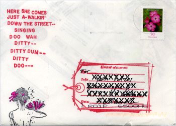 Su nau en dan skriëfst se bryfkes, met pen. Gyn mails dus. Ik fyn briefkes met de haan skreven ok feul aardeger as mailtsjes. Al sêch ik der futdaleks bij dat ik de elektroanise pòst nyt mear misse wil. Ut is ferrekte handech at je eventsjes gau kontakt hewwe wille. Mar fan har krij ik dus nòch moaie haanskreven briëven, in un orizjinele witte envelop. Pòstsegels brúkt se nyt, se maakt har eigen stamps, fan dy fraaie glitterplaatsjes. En de besòrging doët se ok nòch altyd self. Se rydt nòch auto. Ut lopen gaat hieltyd minder. Mar se rêdt har en is fan gyn mins onouhanklek, un selfstannege dame fan dik in de seuventech. Fanmòrren lach der wear un brief op'e kokòsmat. Over de inhoud laat ik niks los, allienech dizze levenswiisheid, dy't sij ok wear fan har moeke metkregen had: