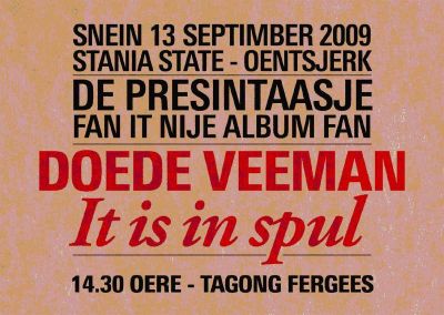 Soms hewwe je dat, op deselde dach ferskillende aardege aktiviteiten. Su kondegde ik gister ut Iepenloftkonsert fan de Harmonie met Gerrit Breteler an. Op dyselde sundachmiddach presenteard Doede Veeman syn nieuwe CD ok. Je mutte dan un keus make, fyn ik niks an. Ik wú wel naar beide festiviteiten. Kan dus nyt. Op 12 september utselde. Dan sal ik de opening fan de Monumentedach hier in Sneek fersòrge, middachs foetballe en maat Josse de Haan syn pòrtret ( in ferbaan met ut winnen fan de Gysbert Japikspries ) wurdt dan anboaden op ut júbileumfeestje fan ut gouden FLMD. Mut mar sien. Foarlopech bin ik met de laaste fakaansy-dagen bezech. Niks mis met!