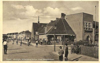 At je stukjes over fòlksbuurten as ut Sperkhem skriëve dan kanne je de klòk der op gelyk sette dat der ferhalen los komme. In dizze buurten woane fertellers, lees Harm Rozenberg syn dachboekfragment fan gister der mar op na. Jan ( & Tine ) Bouma, un oud-Sneker en bij ut klimmen fan de jaren nimt de nostalgy toe, mailde mij un fraaie foto fan de Koaningin Wilhelmina Skoal.Ik hou fan sukke moaie swart-wit foto's.