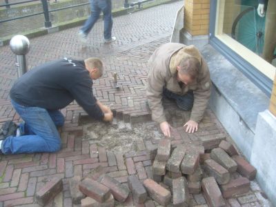 Dizze earste òktober fan 2010 is foar mij un datum om bij stil te staan en nyt gau te fergeten. Fanmòrren om 08.30 uur was ik anwezech bij ut lêgen fan de poëzystien foar ut pand fan kledingsaak S. E. Dijkstra. Bij SIPKE -1890 dus! Want fanou fandaach gaat ut bedrief ferder onder dy naam. Elke Sneker weet dat dizze naam foar mear as 100 prosent de lading dekt. Su’n earste stienlêging midden in ut sentrum fan Sneek trekt altyd fòlk, hoe froech op’e dach dan ok. Dat was fanmòrren al nyt anders, der komme futdaleks kleurrike Snekers om heen staan. De foertaal is dan ok folledech Snekers.
