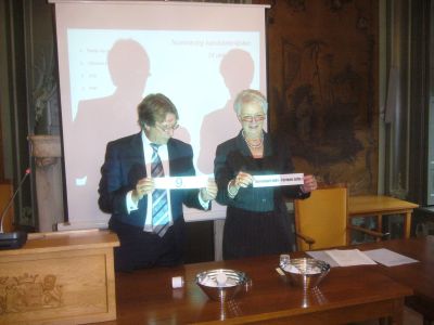 Fanmiddach ok nòch even un kertierke op ut Stadhús weest. Dêr wurdde met un noadege protokòl de lijstfòlchòrde foar de kommende gemeenteraadsferkiezings bekend maakt. Burgemeester Hayo Apotheker sprak selfs fan un bysonder moment: ' we zijn vanmiddag voor het eerst publiekelijk in actie voor het openbaar bestuur van de nieuw te vormen gemeente...' Dêrna gingen de kokerkes met partijnamen en de lijstnummers in de metalen beslachkommen om ferfòlgens flink deurmekaar heen husseld te wurden.