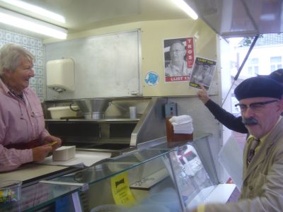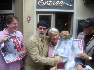 Heel wat BS'ers kregen de rútbiljetten fan Jan & Bertus in de hannen drukt. Uteraard met ut noadege kommentaar. Omdat de gefestegde politieke partijen ut lêge late ( ' ut is één groate luchtbel...') springe de RKP en TROS in ut fakuüm dat hieltyd mear ontstaat. Dat is dan ok de groatste reden dat beide mannen foar hun self begonnen binne. De politike karafaan begon foar de 120 jarege winkel fan SIPKE-1890, dêr't kommentaar leverd wurdde op de stien. " Och hearken nòch an toe, Sipke staat der in levende lijfe bij en tòch al un ' rust in peace '!" Jan ferklaarde dat na ut lezen fan de titel fan ut fers RIP-KE. Hij had de goeie bril nyt op en las foar de S un R...