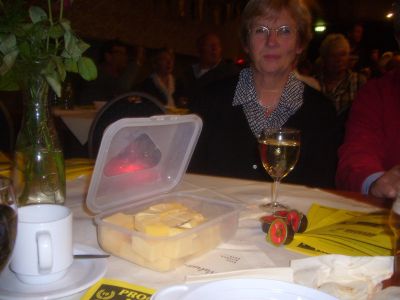 Na alle hektyk fan de oulopen weken fandaach un hele rustege dach beleefd. Is ok wel us lekker! Ut ferhaal fan de pylk & booch dus. Fanavend magge we wear an de bak foar de seuvende oulevering fan Heabeltsje de Jong har jaardach. Ik hew der un soad nocht an, want ut is nyt allienech de foarstelling, mar ok alles wat der om heen plakfynt. Un hele gesellege bedoëning! At mòrrenavend de laaste foarstelling weest het, sal ik hier myn ferdere befiningen over dizze júbileum BSA wel geve. Tòch nòch even twee foto's dy't ik woênsdachavend skoat. Op de ene is tòp-regisseur Gerard Hamersma te sien, hij staat achter ut spreekgestoëlte fan Van der Wal. Moai dat de huidege eigenaren, Bas en Arjen, op dizze manier un stukje Sneker horeka-geskiedenis levend houwe! Op de andere foto un plestikbakje met stukje kees. " Ja, dat nimme we elk jaar self met at we naar de jaardach fan Heabeltsje gaan..." At je ooch hewwe foar sukke details geniete je un kear sufeul!