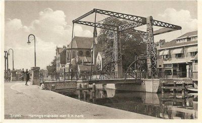 Fan oud-Sneker Jan en Tine Bouma, se woane an de andere kant fan de Dyk, kreech ik onderstaande foto fan de Elektrise Brugge. Jan dy noemt dizze brugge naar ut Sperkhem ' Baanstra's Brugge ', omdat Baanstra hier jarenlang bruggewipper weest het. Fraai kykje Bouma's! Jan deelt ok nòch met dat hij op ut plak dêr't ut jonkje sit in syn jeugdjaren urenlang het sitten te fissen. Let ok us op de moaie straatferlichting.