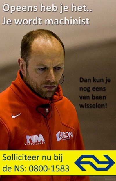 De Telegraaf en de Liwwarder Krant ( Renze Lolkema, dy't syn sjoernalistieke loopbaan oait bij de Sneeker begon het ut ferslach skreven, mar dat wil nòch nyt sêge dat hij de kòp maakt het ) kòppe allebeide un bitsje overdreven dat ut un DRAMA is foar Sven en Kramer. Nou ja, myn mailboks sit fol met húmòristys bedoëlde grappen over de ferkearde wissel fan de skaatserider út Ouweskoat. Dy arme Kemkers krijt der ongenadech fan langs. " Wat is de overeenkomst tussen Sven Kramer en de NS? Als er ijs ligt, dan werken de wissels niet..."