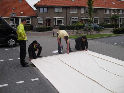 En wat te sêgen fan burgemeester Hayo Apotheker dy’t de haan der nyt foar omdraaide en lees ut fers dat hij nòch nyt onder ogen had had, spontaan foar. Dizze man het wat met ut stads, laat dat dúdelek weze! Naast de anbieding fan de plakette het de wykfereniging ok nòch un heel groat kanfasdoek met dêrop fers + foto kregen. Ok binne der mar liefst 700 eksemplaren op fraai papier drukt dy’t an de buurtbewoaners kado geven wurde. Ut kan nyt op. Moai man! Hierbij un antal foto’s fan de happening dy’t fanmòrren froech al begon met ut ophangen fan de plakette. Dizze hele week is ut nòch feest in de buurt.