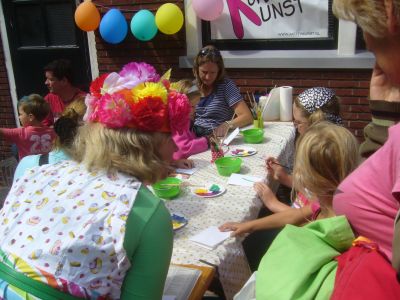 Twittere? Nee Wopke, Anske & Cor, ik blog wel un bitsje faker at der wat te rêden is. Sukrekt wear un loopke deur de sonovergoaten stad deen. Ut Straatfestival trekt un soad besoekers en ut is un fleurege gesellege boël in ut sentrum. Je salle mar toerist in Sneek weze, dan falle je met de neus in de kulturele butter. Dochter Piety ( = www.katreinkunst.nl ) is aktyf an de foët fan de Groate Kerk. Kyndes skildere kleurege kaarten foar minsen dy't se helemaal nyt kenne. Katrein Kunst òf de kyndes nimme un willekeurege bladside út ut telefoanboek, wize al like willekeurech un adres an en dêr gaat hun kunstsinnege kreasy naar toe. Simpel mar prachtech idee! Ferder ok folop fertier. Over anderhalf uur nòch even mear reklame foar de stad make op Omrop Fryslân.