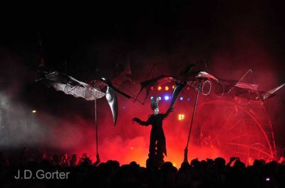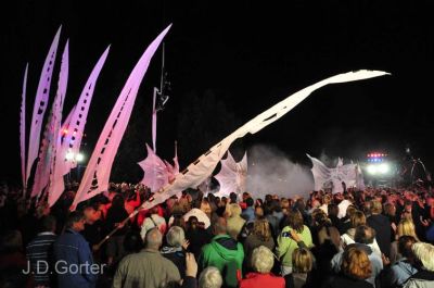 Kiek nou kan ik hier de sobistise resensent wel úthange, dy’t met un soad plak & knipwerk ( google is myn redder ! ) ut Close Act spektakelstuk MALAYA onder ut filearmes leit, mar dêr hew ik helemaal gyn nocht an. Liever myn eigen persoanleke impressy fan wat um gisteravend ouspeulde in de foartún bij oans in de straat. Ut begon gistermiddach al, toen ik fanút de Julianastraat un gigantise teleskoopkraan bewegen sach boven de Bòlserterwech. At ik dergeleke beelden sien, dan krij ik ut Mecanogefoël wear teruch! Uteraard had ik wel in de gaten dat der un straat ferderop druk oefend wurdde deur Close Act. In de namiddach dan ok naar ut parkearplak met de illústere naam Bòlserter Poart gaan. Dêr sach ik al dy artysten ( profesjonele & amateurs & frijwillegers ) druk doënde. Je foëlden de spanning. Moai! Om eksakt 22.00 uur ging ut dan los met Malaya. Dúzenden minsen met mij waren anwezech op ut desolate parkearterrein. Nee, de lokasy fyn ik niks. Dy mut mear in ut sentrum fan de stad, met op’e achtergroan moaie gevels en gebouwen. Alhoewel de groate treurwilg an de rane fan ut spoar in spòtlichten had wel wat. Fanou de earste oarferdovende klanken, ( onnoazel om flak foar un megaboks staan te gaan Van der Veer ! ) was ik in de besnijïng fan ut stuk. Alle sintúgen krije hun gerak, mar de ogen ut measte. De kostúms, de futuristise mobiles, de luchtopjekten, de indrukwekkende insekten, ut fuur en de kleurepracht. Wauwwww: Allemaal fan un overweldegende skoanhyd. De geografy, ut públyk dat kear op kear alle kanten opspat deur toedoën fan de steltlopers dy’t der infege. Hearlek man. Ik laat mij metfoere in un wonderleke Ying & Yang-weareld ( copyright Anske ! ) en foar ik ut in de gaten hew is ut spektakel foarbij. Later op bêd krij ik aparte surrealistise dromen fan núvere wezens dy’t ik sumar teugenkom op klaarlichte dach, in ut hartsje fan Sneek. Toen ik fanmòrren wakker wurdde opende ik myn mailboks en sach de moaie foto’s fan Jan Douwe Gorter. Soms is ut beeld fraaier as ut woard!
