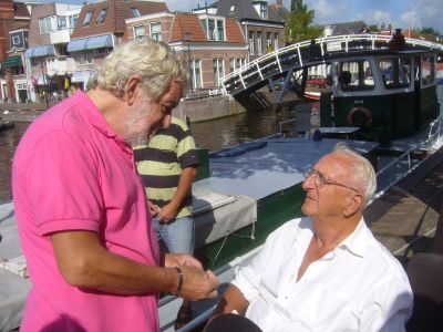 Nadat Harm met Van der Werf fan de Boat fan ut Jaar praten het, dy’t al un prachtech eareplakje an de foet fan de Waterpoart het, gaan we de Wonderbrugge over. Even kòrt overlech met Anne Silvius en Jan Bootsma, ok leden fan de floatskoukommissy. Jan Bootsma, ok un tòpregelneef, het ut nyt an tyd om lang te praten. Hij wil de dingen rúm fantefoaren klaar hewwe, niks an ut toefal over late.