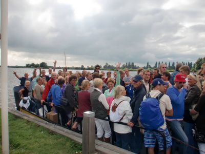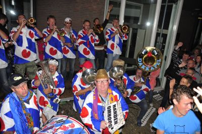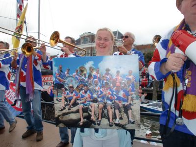 Harm maant al wear tòt aksy, de treetsjes frisdrank en bier mutte besòrgt wurde op faste ankerplakken foar de dweilòrkesten. Dweilòrkesten? Ja, un wezenlek onderdeel fan de Floatskou wêrbij’t de òrkesten allemaal deur Harm regeld wurde. Un bealechfol werk omdat in de fakaansyperioade un soad òrkesten letterlek nyt thúsgeve. Mar wie’t eenkear metdeen het, wille graach wear teruchkomme. Harm blieft echter selektyf. Eén fan de pleisterplakken is de fantastys legen woaning fan Alie Hoogland & Hans Faber an ut Somerrak. De enege karakteristieke woaning dy’t staan bleven is in de loop fan de jaren. Alie: “ Ut is hier un gouden plakje, we ergere oans noait an de boatsjeminsen dy’t letterlek an oans achtertún oumeare. Gewoan even goeie ouspraken make en gastfrij weze. Laast was der un hele ploech met studenten dy’t anleiden. Komt su’n student bij mij en fraagt ‘ mevrouw heeft U ook een strijkplank voor mij, want ik wil dit witte overhemd vanavond aan ’ Ik sei ‘ bistou besopen kom op met dat overhemd ’ en ik hew ut keurech foar um streken. Kiek dan krije je noait ròtsoai!” Fanavend hewwe de Fabers un kompleet buffet klaar staat foar de múzikanten dy’t na de floatskou bij hun del komme. Ut is bearegesellech su fersekere se mij.