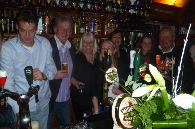 in ut Bolwerk an de Kerkgracht ontfange SWF bestuurders blij en fol tròts ut earste kultuurmenu wêr’t de liefhewwers gulsech de fingers bij aflikke