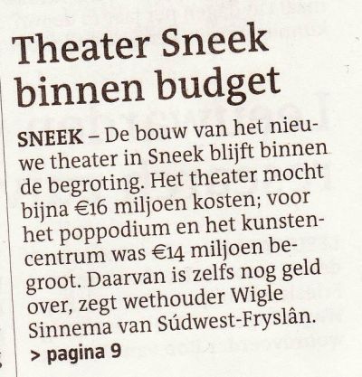 In Apotheker Ro-co-co-stad-uh-gemeentehús Dêr was ut dit jaar nyt helemaal plús Bestuurders sloopten sumar in un ferloaren uurke Op ut Waltaplein ut Sneker Muurke Hierdeur maakten sij wel wat Brok (ken ) Der liep dêrna in Sneek wel ééntsje freeslek te mokken