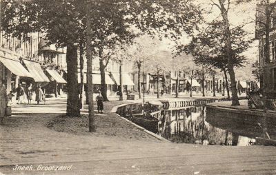 “ Ik herinner me, dat de gracht op het grootzand nieuwe walbeschoeiing kreeg. Toen de werkzaamheden klaar waren wilden we dat graag vieren. We hadden in de krant laten zetten, dat een bekende Sneker de markt zou openen. Iedereen die’s morgens om zeven uur bij de kraam aanwezig zou zijn, kreeg een gratis plant. Die bekende Sneker was ik, we hadden een jacquet met een hoge hoed gehuurd en een grote slee van een wagen. Om half zeven ging ik mij verkleden. Ik was een beetje zenuwachtig, omdat we dachten: ‘ Er zullen zeker wel veertig mensen zijn.’ Ik kom er aan in die luxe slee met het apepakkie aan. Staat het zwart van de mensen, tussen de vier- en vifhonderd. Ik zou een speech houden en hiervoor hadden wij een speciaal bordes getimmerd. Ik klom op het bordes waar ik de speech hield, waarna de heer Brandsma mij bedankte en mij een hand gaf. Nu hadden ze afgesproken dat ze mij het Grootzand in zouden duwen. Dus kreeg ik een por en lag in de blauwe jeiter, van het Grootzand, met mijn gehuurde pakkie. Natuurlijk ging er een applaus op van jewelste. Dit zijn dingen die alleen op de markt gebeuren.”