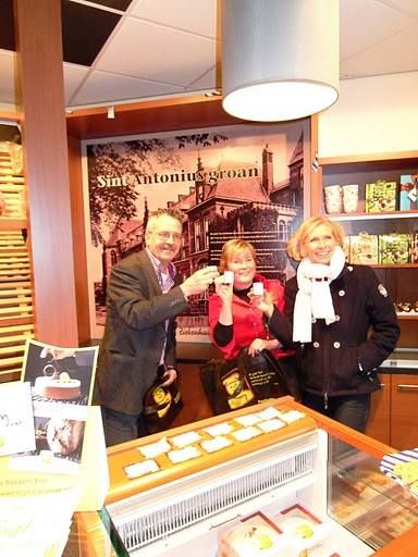 Un winkel fol met fòlk was getúge hoe’t in de renofearde bakkerssaak ut fers Sint Antoniusgroan onthuld wurdde. In dat fers lêch ik de link tussen wat weest het en de aktualiteit. Op ut plak dêr’t Nyncke nou har winkel bestiert, was oait ut Sint Antonius Sikenhús. Dat de naam fan ut Sneker Hospitaal begin negenteger jaren fan de foarege eeuw ferkracht is deur de titel Sint te ferwijderen sit mij en un heel soad Snekers nòch altyd nyt lekker. Hearlek om dy onfrede posityf te ferwerken in un fers en te merken dat de jonge opdrachtgeefster wel histoarys besef het! Ut was gistermiddach un gesellech openings-half-uurke met súkerkrakelingen en Hollands Genoegen fan de Weduwe Joustra. De winkel siet der deur de renofasy feul lichter en groater út. Bovendien wurdt de klant wear holpen, ut is un bedieningswinkel in optima fòrma dêr’t de klant um thús foëlt.