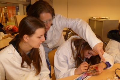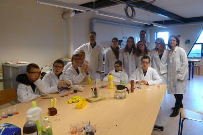 Natuur- en skeikunde binne bij oans op de Praktykskoal onderskoven kyntsjes en dan druk ik mij ok nòch eufemistys út. Fandaach was dat anders. Kollega Carin Boersma fan Bogerman kwam del om met myn groep un antal skeikundeproefkes te doën. Allienech ut antrekken fan su’n écht witte laboratoariumjas geeft al un bepaalde kick: Kleider machen Leute is’t nyt su?! De kyndes hewwe fan ferskillende produkten de suurgraad meten met behulp fan roaie koal sap. Prachtech om te sien hoe’t de púbers met hun miny-ondersoekjes bezech waren. Learen deur doën en mekaar útlêge hoe’t yts sit het tòch feul mear as ut tradisjonele learen.