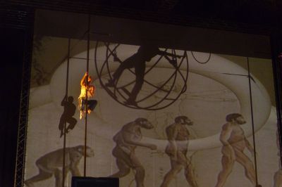 De minsen dy’t gisteravend in hun achtertúntsje fan de Waterhoenstraat saten met un glaske bier òf wyn onder haanbereik, mutte tussen tien en elf uur even docht hewwe ‘ho jonges gyn alkohol mear’. Want ut was súver hallusinearend wat um boven ut parkearplak an de Bòlsterwech ouspeulde. Nou us gyn overfliegende flearmúzen, mar wòndermoaie kreasy’s fan Corpus Acrobatics, dy’t druk an ut repetearen waren foar de foarstelling fan fanavend. Diskear de múzyk nyt op ut folúme fan ‘oaren totall los’ su as oulopen saterdachavend bij ut Pink Projekt, mar indrukwekkende filmúzyk dy’t op mij weldadech overkwam. Wat un prachtavend kreech ik sumar in de skoat wurpen, om met nòch un antal minsen in alle rust fan dizze deurloop te genieten. Un reis deur de tied an de haan fan Darwin, su sú’k de foarstelling in één sin samenfatte kanne. Mar ut is feul mear as allienech ut ferhaal fan Darwin’s evolúsyteory. Ut is acrobatic fan un ongekende skoanheid, un sierlekheid fan daansers en daanseressen om de fingers bij ou te likken. Wat foëlde ik mij gisteravend un stieve hark toe ik al akrobaten over ut groate poadium bewegen sach. Wat un elegaansy en souplesse! En wat fraaie fideokunst ok! Mar ik hou op, want ik fanavend wil ik der wear naar toe, at de artysten ok nòch hun moaie klearen an hewwe. Mòrren skrief ik dan wel mear over myn indrukken fan dit enòrme spektakel. Un absolúte anrader om hier fanavend bij te weze. Ut programma begint om 20.00 uur. Hierbij al fast un paar foto’s.
