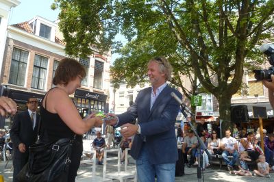 Wethouwer Maarten Offenga deelt Sneekweekkermesprizen út