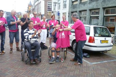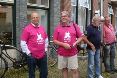Burgemeester Hayo Apotheker, fanmiddach prima op dreef, was laaiend entûsiast en onder de indruk over de spontane huldeblyk fan al dy Snekers in ' syn ' tún.