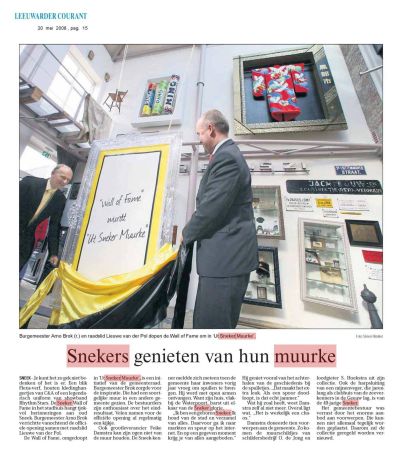 Ik hew nyt sufeul met Muren, ik bin mear un man fan ut open SWF-laanskap, mut niks hewwe fan lui dy’t hun ferskúle achter metselde muren òf andere barikades. Anders lach ut met oans Sneker Muurke. Fandaach set ik der foarearst un dikke punt achter de kwesty. Hayo Apotheker al òf gyn echte Sneker, het syn Mea Culpa útsproken over de sloop fan de Wall of Fame. Fan de Sneker ferteugenwoardegers in de SWF-raad hewwe mar un paar minsen hun daadwerkelek insetten foar de Muurke-kwesty. Se hadden blykber andere dingen an de politieke kòp.