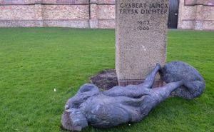At dit nyt un teken fan boven is, dan weet ik ut ok nyt mear!! Dat de Frystalege poëzy hieltyd mear un saakje fan in de marzje wurdt is un gegeven om onder ogen te sien. Dat ut beeld fan de groate Friese dichter Gysbert Japicx fan syn sokkel waait is roept assosiasy’s op met ut beeld fan koaning Nebukadnezar. Dat beeld donderde ok in mekaar.