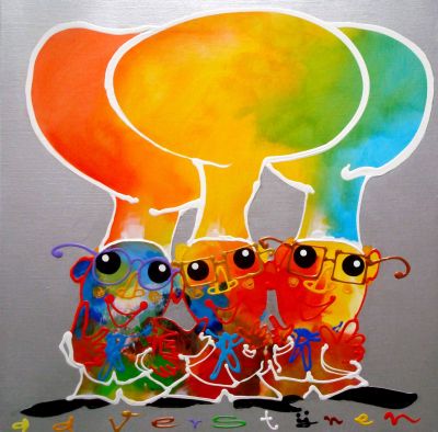 Gistermiddach de tentoanstelling fan Ad Verstijnen út Boxtel in un perfekte kombinasy met beelden in mozaïek fan Liane de Deugd út Peins bewònderd. Wat un feest! Wat un kleurepracht! At un mins hier nyt mear blij fan wurde kan, dan weet ik ut ok nyt. Ik wurd teminsten su blij as un kyn! At ik fanmòrren de achtergroaninfòrmasy bij dizze ekspo lees, bliekt dat Verstijnen en ik geliekstemde positieve geesten binne: