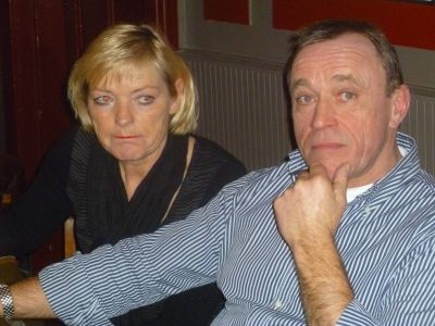 Petra van den Akker, jonge politika met positieve insteek richting kollega raadsleden. Naast Van den Akker, ut immer aktieve PvdA-raadslid Johan Feenstra breed lachend.