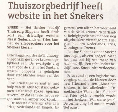 Wêrom súden je de diënsten fan un sòrchbedriëf nyt in je eigen taal anbiëde kanne? Thússòrch Slippens in Sneek sal har oukomst nyt ferloochenen en komt met un drytalege site! Se hale der fandaach de LC met! Welke Sneker bedriëven fòlge?! Hieltyd mear dúkt ut Snekers op in ut leven fan alle dach. Nyt allienech fandaach fòlgende week opnieuw! Fòlch dizze site mar.