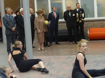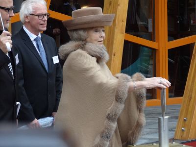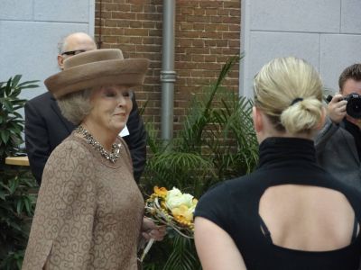 Un waar mediafeest was ut fanmòrren in ut hartsje fan de kulturele hoofdstad fan Fryslaan toen Konaning Beatrix op besoek kwa. De majesteit kwam 10 minúten eard as pland, mar der wurdde flot op antisipeard. Ut bloemmeiske, Lotte Dierick, boad Beatrix even foar half elf un boeketsje bloemen an en dêrna ging de Koaningin ut atrium binnen.