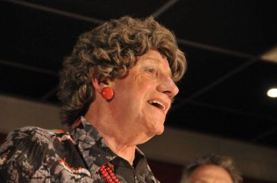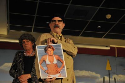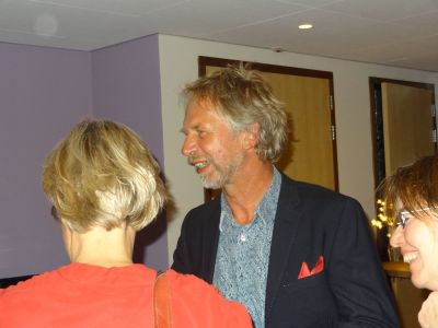 Akteur Peter Tuinman het gyn ooch foar twee Sneker bestuurders, Betske Salverda en wethouwer Gea Akkerman.