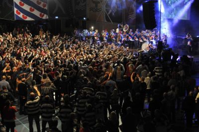 In un bomfolle Sneker Spòrthal, der waren mear as 1500 minsen, het de Blauhúster Dakkapel met un laaste konsert afskeid nommen fan ut públyk. “ Wat oait begûn as muzikale stunt met 8 fanatike muzikanten is útgroeid ta 40 jier muzikaal genot. Wij diene doe dingen dy’t op dizze wize noch net earder fertoand wiene: alle bekinde meisjongers út’e holle spylje. Doe kamen der oanfragen en it eindige alle kearen wer yn in grut feest. Wij koene gewoan net mear stopje. It hat goed west, mar no is ito ere en út. We koene jûn noch ien kear flamje”, met dizze woarden bedankte man fan ut earste uur Bernlef Kornelis ( 68 ! ) ut públyk. Earder al had burgemeester Hayo Apotheker moaie woarden richting de kapelleden sproken. Wêr’t miskyn stikum op un lintsje hoopt was, wurdde dat even later rúmskoats goëdmaakt deur Sinteklaas! De Goedheiligman beoemde alle leden in de Orde fan de Pepernoot. En dan alle múzikale hulde, ADVENDO Sneek foarop, de ferskillende andere dweilòrkesten, Elske en Femke de Walle, ut was allemaal ferrekte sympatyk. Un waardech múzikaal afskeid in un perfekte ambiaans, in un november Sneekweek dy’t syn wearga nyt had. Adieu Blauhúster: bedankt foar al dy moaie múzikale hoogtepunten, Sneek is tròts op jum!