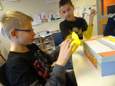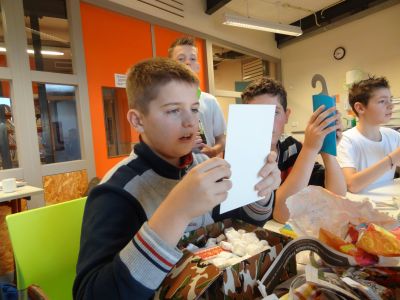 Wat ik un heel aardech onderdeel fon en de kyndes fòlgens mij ok, was andacht frage foar minsen met un fisuele beperking. Op syn plat Snekers: Blinen dus! De learlingen ( en ik úteraard ok ) mochten ervare wat ut earst om niks te sien. Un swart maksker op, met un blinestòk in de haan over un ribbelmat lope falt nyt met. Hearlek en earlek hoe open oans kyndes fan 'e Praktykskoal de fragen stelle. " Als U plassen moet, hoe doet U dat dan? " Ut antwoard fan de bline gastdosent: " Ik ga altijd zittende plassen..." Opmerking fan un andere learling: " Dat vind ik niet stoer voor een man, maar het is wel handig! "