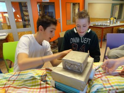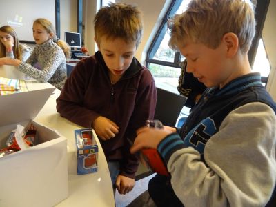 Hoe krije je ADHD'ers ( ' ja, nou én ? ' )nòch drukker as druk? Simpel: Sinteklaas fiere! En dat hewwe we fandaach dus deen. Ik mach wel sêge met un prachtech pakjesfeest op skoal. In de eigen groep, prima pedagogys klimaat, en in de kantine, dêr't ok al un útlaten sfear heerste! Ut sal je mar overkomme dat Sinteklaas met un Renaultsje de skoal binnen tuffen komt. Ut gebeurde fanmòrren bij oans op De Diken. Alle kearen staan ik wear ferwònderd naar oans learlingen te kieken en ik sêch ut de ouders fan Dik Trom na: ut binne bysondere kyndes en dat binne se! Pure rykdom at je kyndes feesten leare, se wurde der dus rikere minsen fan. En wat un kreativiteit in al dy surprises! Sjapoo!!