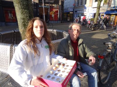 Fanmòrrenfroech nòch ferlate Sinteklaasinkopen in de stad deen. Onder ideale winterse wearsomstandechheden. Alles liekt fleureger met su’n hearlek wintersontsje an de hemel. Op ut Skaapmerkplein kreech ik lekker poeiermelk en un cupcake fan Specsavers, dy’t un nieuwe winkel op ut Oasterdyk opend het. Ut maakt mij fleurech! Sien dan ok dat dy nieuwe brilletoko foar un haanfol minsen faktures het! Kiek dat kan de stad brúke!