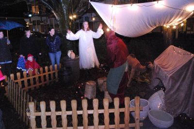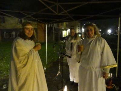 Un kerstfiering sonder kerkeleke muren, dat spreekt mij wel an! De pastor herinnerde ok nòch even an ut foarfoegsel SINT foar de naam Antonius en legitimearde op dizze wize de RK wurtels fan ut sikenhús. De heilege kommuny wurdde ferfòlgens fierd foar wie't dat wúden.