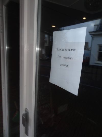 Tot 1 december gesloten staat der nou nòch op ferskillende deuren fan ut Hotel-Restaurant. Staat gyn jaartal bij, da's wel ferstandech!