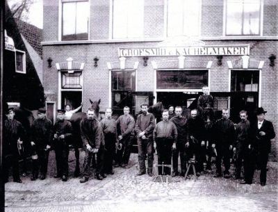 Eén fan dy anekdoates fertelde Heleen gisteravend al. Uko Hendrik Huges ( 1886 - 1971 ), de derde generasy, was un indrukwekkende ferskining met syn moaie bos witte haar. Ut was ok un hele groate kearel, met skoenmaat 52. Dy groate foeten saten Uko wel us in de wech at hij autoride moest, su kon hij de foet nyt altyd like flot fan ut gaspedaal krije. Dêr kwam bij dat Huges nòchal kipech was, hij sach de wizers fan de snelheidsmeter nyt skerp. De fader fan Heleen, Jaap Sonnenberg, moest dan met syn pake met in de auto om te sien hoe had se reden.' Hoe hard gaan we jonkje ' , was dan un standertfraach at groatfader en kleinsoan richting Joure reden om dêr bestellingen te brengen. Uteraard nam de jonge Jaap Sonnenberg ut nyt altyd like nau met ut deurspeulen fan de snelheid!