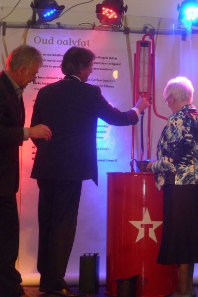 Burgemeester Hayo Apotheker ferrichtte tegare met frou Veenema-Abma, dy’t ik oait de earetitel fan oalybarones gaf, de opening. Dat gebeurde deur út un autentyk oalyfat un kan met peteroaly te fullen. Alle attributen dy’t bij de openingshandeling brúkt wurdden hewwe un histoarise waarde. Su is ut fat nòch brúkt deur frou Veenema en de maatbekers deur pake Fokke Veenema en heit Veenema. Foar un soad minsen un écht déjà vu gefoël, su as de prima searemoanymeester Jan Eekma angaf.