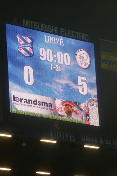 Selden met su'n leech gefoël in un foetbalstadion sitten as gisteravend bij SC Heerenveen - ajax. Fanou minút dry met de smoar in'e bealech op myn blauwe kúpstoëltsje fak 21, rij 1 en nummer 5 onderútsakt. En ut stadion wurdde hieltyd leger en leger. Ik had selfs de moëd nyt iens om overend te kommen toen de boys in blue & red al lang knock out lagen. Ik bin der de man ok nyt na om fut te lopen, hew eigenlek un freeslek hekel an futlopers. Ut sal wel komme omdat ik nòch bij dy súppòrtersgroep hoar dy't oait de SCH steunde toen se in de Earste Divisy speulden. De laaste jaren amper mear lekker foetbal sien, mar gisteravend sloech alles. Wat un lange avend was ut tòch. En fantefoaren had ik der su'n nocht an. Tegare met myn soan al un uur foar de wedstryd in en om ut stadion omstrúne. Fol overtúging dat we dy ajax-mietjes inpakke súden. Nòch nyt earder had ik Ron Jans ( hij skynt naar FC Zwolle te gaan ! ) su selfbewust klonken: Laat ze maar koemen, we zijn er klaar voor...!
