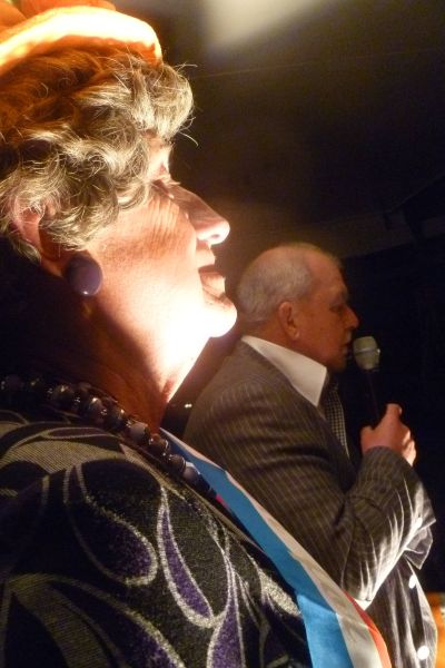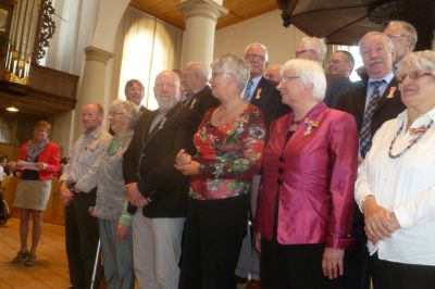 De aubade was wear ouwerwets goëd, un geweldech sfearfol gebeuren in ut hartsje fan de sonovergoaten stad. As dank foar al dy jaren begeleiding boad ut gemeentebestuur de Blauhúster Dakkappel un deur Paul en mij inlijst fers an: Adieu Blauhúster. Un groate ear om dat en públyk foarleze te maggen fanou ut bòrdes! Hierbij ut fers:
