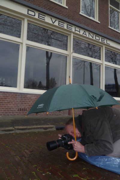 Om jum un letterlek beeld te geven hoe serieus wij ut projekt benadere laat ik hierbij twee foto's sien dy't ik krekt skoaten hew fan Paul van Goor. Paul maakt foto's fan de straatstienen fan de Kòrte Feemerkstraat. Dizze straat komt foar in een fan de fersen dy't ik skreven hew. Ut sú heel maklek weze om un antal ouwe foto's út ut omfangrike argyf fan Paul van Goor te nimme en dy as illústrasy te brúken. Mar dat foëlt dus nyt goëd, is nyt passend, fandêr wachte op ut moment dat ut geskikt wear is om de betreffende foto te maken.