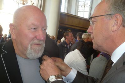 Klaas Visser kreech fanmòrren un dubbele onderskeiding: fan de FNP was der ok nòch un Sulveren Spjelde foar de Sneker bestuurder!