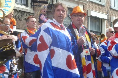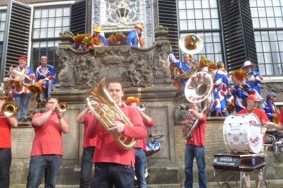 amper an te dúden Sneekgefoël at de Blauhúster Dakkapel op koaneginnedach ut reveille mòrrens om acht uur fanou de koepel fan de Groate Kerk klinke laat at múzikale mannen over de straatstienen fan de monumentale Marktstraat dweile ut toestroomde fòlk in ekstaze brengt met un poepke wònderskoane blaasmúzyk
