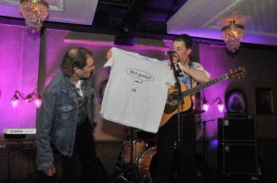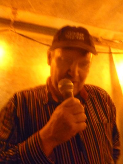 Durk van der Gaast, HJSC in eigen persoan, tidens de priesútreiking. Dizze un bitsje fage foto geeft goëd ut sfearke wear su't ik dat gisteravend onderging: smûk & gesellech in de HJSC tent!