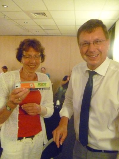 Dy sagen hoe’t sonder al te feul poespas ut earste eksemplaar fan de ch overhandegd wurdde an Walter Melle van der Vegt. Ik had nòch noait fan de beste man hoard, mar dat leit dus an mij. ‘ Want Walter hat de beste earen fan Fryslân ’, aldus de kenners. Piter het bij Walter syn earste cd opnommen ( ja tòch ? ).