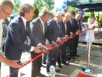Ut fers hangt nou nòch bútendeur, mar krijt un plakje binnenin de moskee bij de trapsopgang naar de gebedsrúmte. Moaier kan tòch nyt?! En dat ut fers ongetwifeld ut earst Sneker fers fertaald in ut Turks is, doët mij ok goëd. De offisjele opening ging met ut deurknippen fan un road lint deur de ferskillende hoochwaardechheidsbekleders.