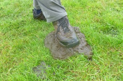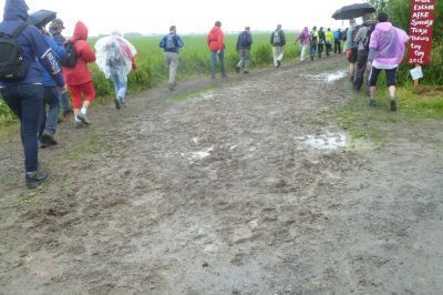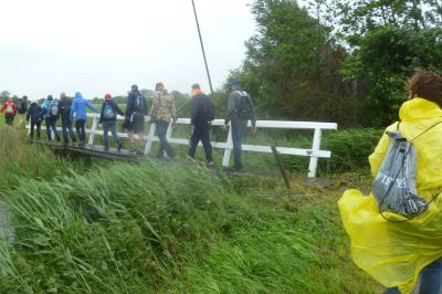 In Oasterwierrum, na 3.2 km krije we oans earste stempelstikkerke al. Ut regenwater komt dan nòch met bakken út de hemel. At we dan bij Boazum ut laan in gaan, sien en ondergaan we de gefòlgen. Ut is één groate blubberbende en ik hew even un déjà-vu gefoël fan de Abbegaaster Boereloop.