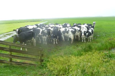 De laaste jaren hieltyd mear fan de natuur oudreven dus, want wat wij fanmòrren metmaakten noeme se in geef Frysk ‘ in reinder ’. Je kanne ut ok an de koeien sien, dy gaan dan met mekaar met de kont teugen de wyn in staan. En wyn ston der wel, jeuminikkus, kracht 8 Beaufort was ut! Ut earste stukje fanou ut groëne parkearterrein naar de boerderij fan de family De Groot an de Wartenterp fon ik al aardech ‘ dreech ’: dwars deur’t laan nou!