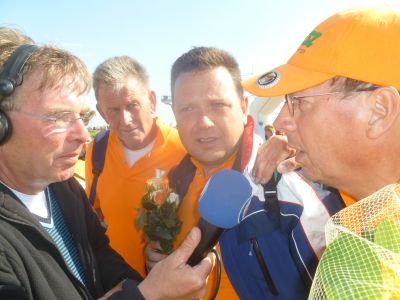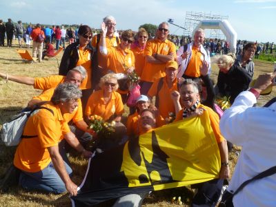 Ut aldermoaiste moment leit tòch bij de finish at Fokkelien en har jonges oans taan op te wachten. Want ondanks alles het dizze tòch foar mij, foar oans ambivalente gefoëlens. Myn frynd en buurman Willem van Netten is der fandaach nyt mear bij. Hij dy’t su fol sat fan de Slachte, dy’t mij anmoedegde om 4 jaar leden met te doën is sinds foarech jaar Sneekweek an de Andere Kant.