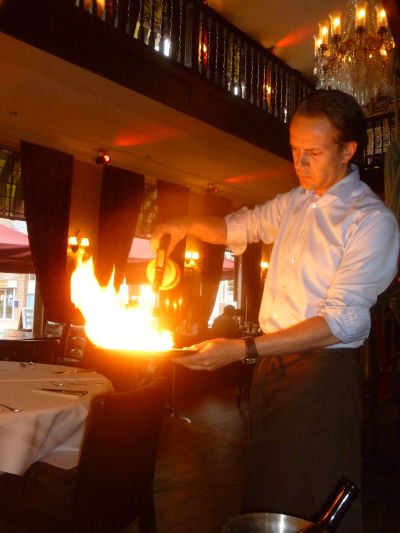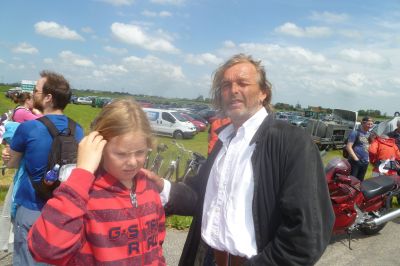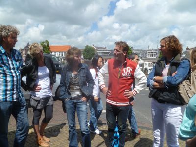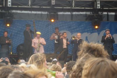 Om un uur òf seuven naar ut Groëne Straan. Dêr speult de Amsterdam Klezmer Band. Ut is der swart fan ut fòlk dat helemaal út syn dak gaat. Hier daanse inderdaad nòch al wat flower power meiskes, nou met un stief sittend kapper Wolhúzen permanentsje in ut grize haar. Moai gesicht man!Opfallend dat der bier en wyn dronken wurdt út écht glazen, dus nyt út plestykbekers. Der is amper rotsoai op ut terrein. At ut echte genieten beginne sal, bin ik al onderwech naar de boat.