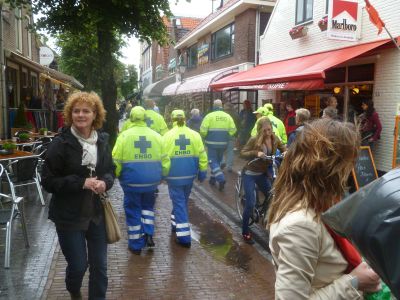 Wat dat angaat had ik ut nyt beter treffe kannen: alle straatteateracts wurdde deur de wearsomstandechheden oulast! Hoe krije je ut foarmekaar, wille je de laaste Oeroldach fan 2012 metmake wurdt alles oulast! En tòch hew ik ut sfearke proeft. Hoe sal ut dan wel nyt weze at ut drooch wear is òf moaier nòch at de son skynt? Ik sal terecht komme in ut foarpòrtaal fan ut kulturele Walhalla! Wat un bekenden bin ik gister teugen komen. En al dy lui mar krekt doën òf se mij elk jaar wear ontmoete op ut eilaan. NEE!! Ut was myn EARSTE kear!!